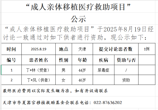 成人亲体移植医疗救助项目20250819公示