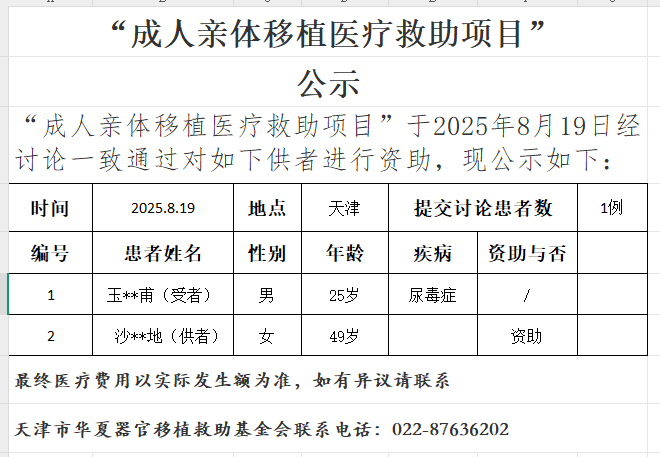 成人亲体移植医疗救助项目20250819公示