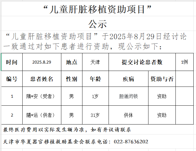 儿童肝脏移植资助项目20250829公示