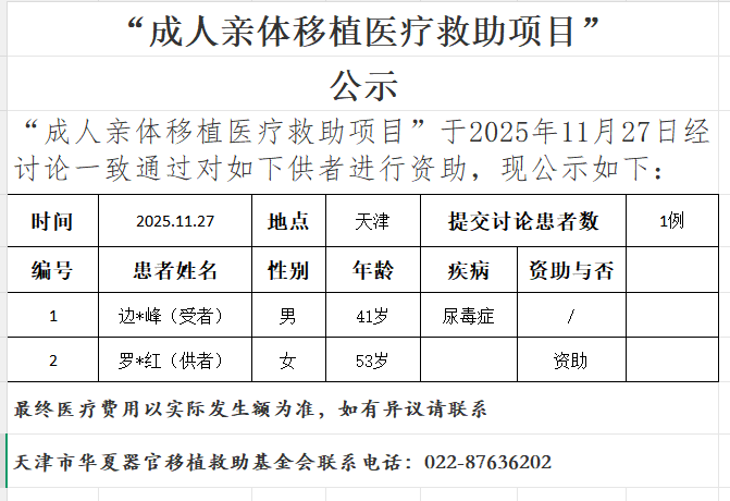 成人亲体移植医疗救助项目20251127公示