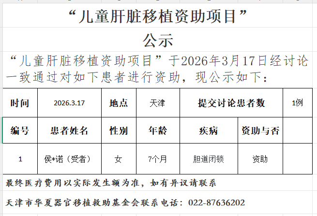 儿童肝脏移植资助项目20260317公示