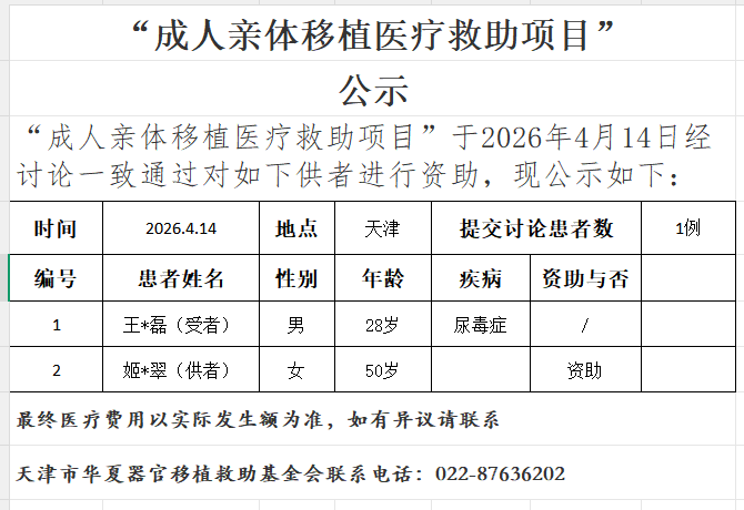 成人亲体移植医疗救助项目20260414公示