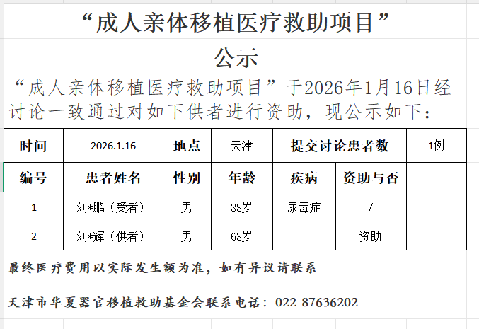 成人亲体移植医疗救助项目20260116公示