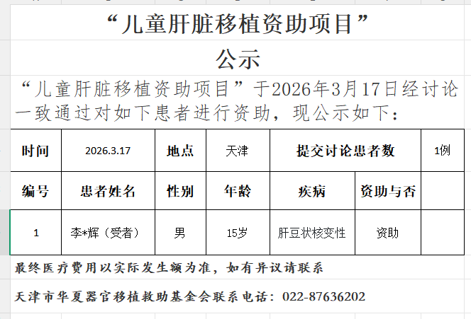 儿童肝脏移植资助项目20260317公示