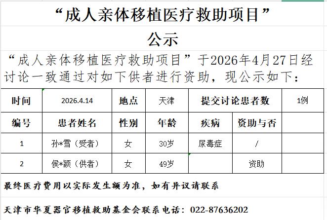 成人亲体移植医疗救助项目20260427公示